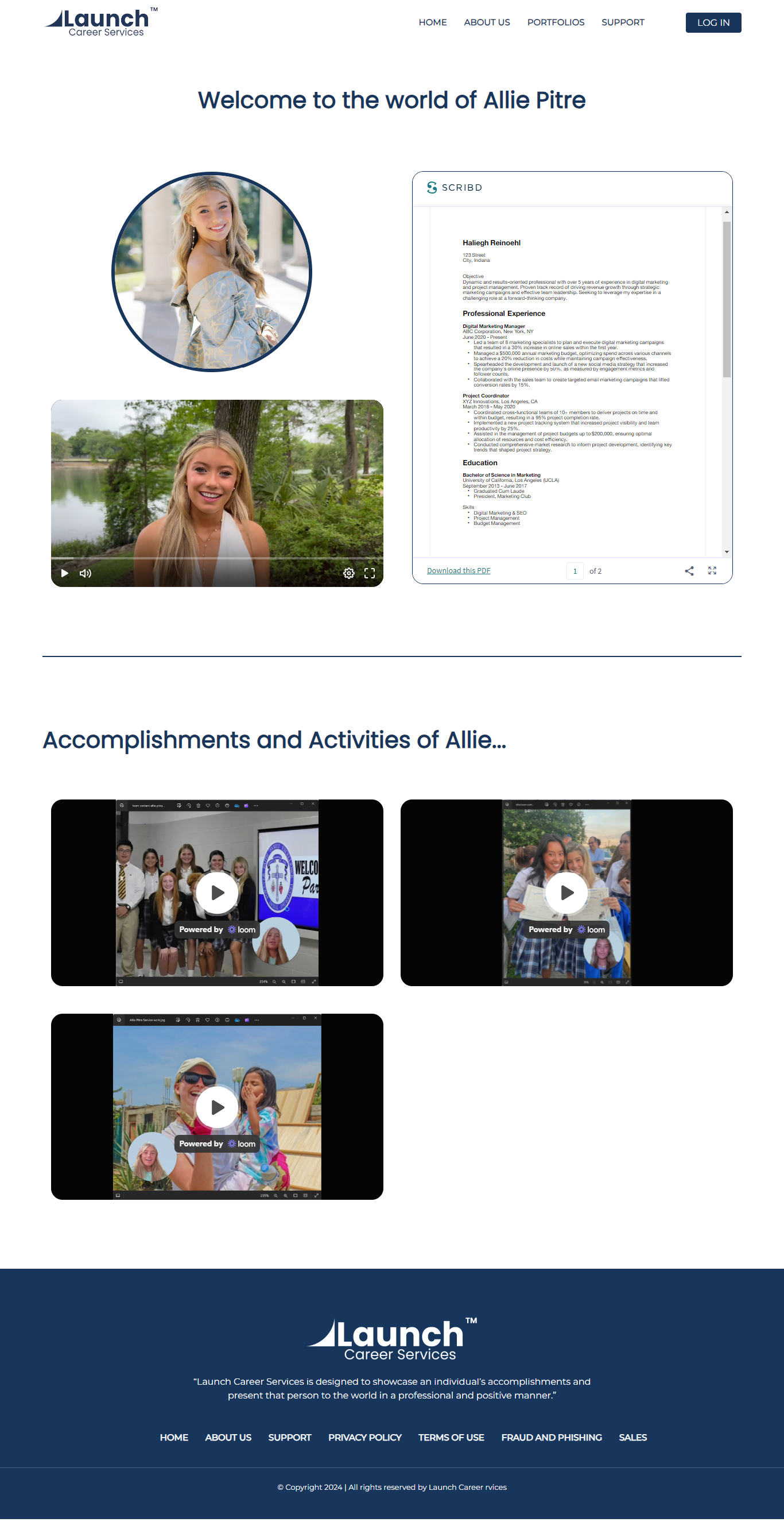 At Launch Career Services, we curate comprehensive digital portfolios that help individuals stand out and gain a competitive edge. Our expert team brings your achievements to life, ensuring your portfolio is a vibrant showcase of your skills, experiences, and personality.